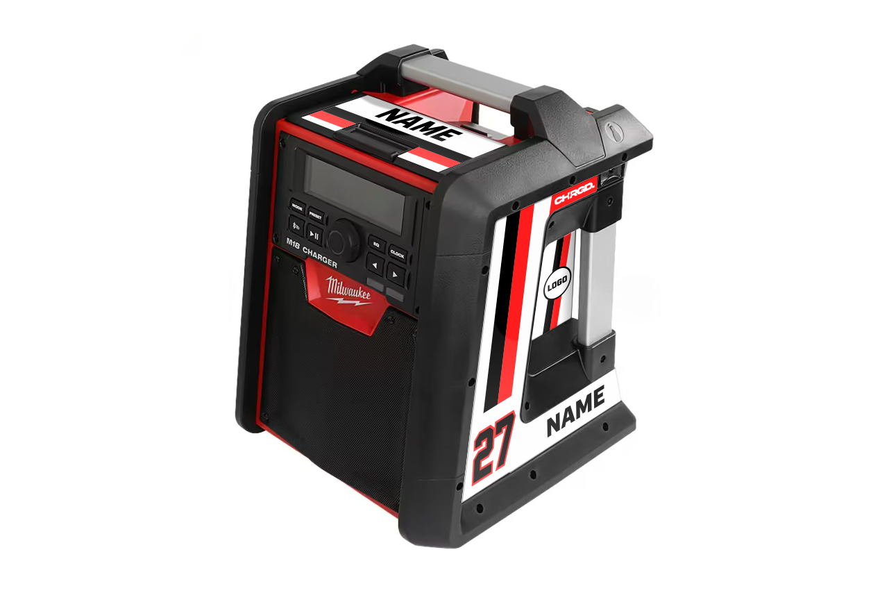 Durable Self-Adhesive Vinyl Kits to ID your jobsite radio - customize names, logos, colors, and patterns to make it unmistakably yours.